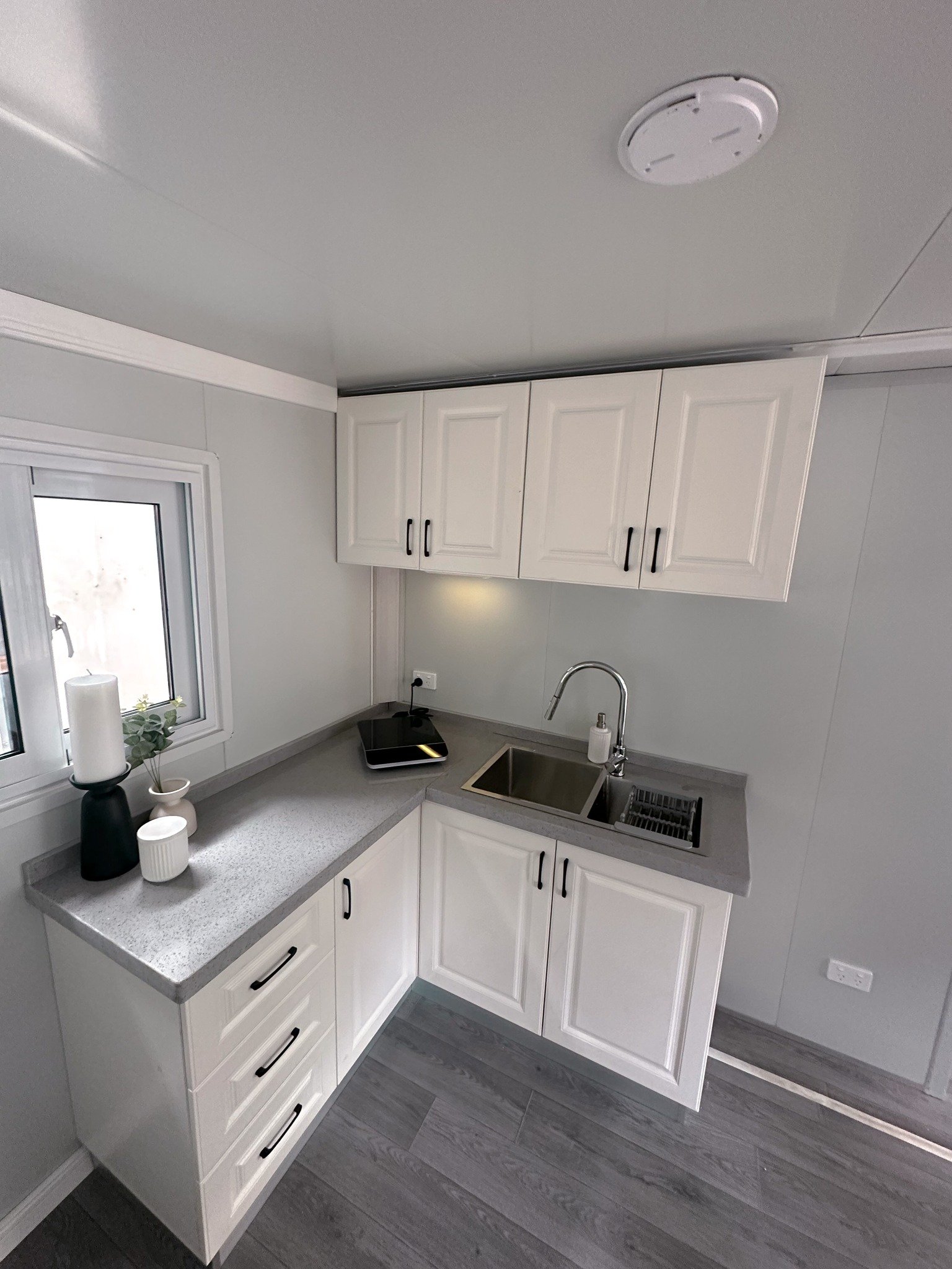 Each Tiny Home arrives 80% complete, featuring pre-installed plumbing and wiring, along with a fully finished bathroom and kitchen—ready for you to enjoy with ease.